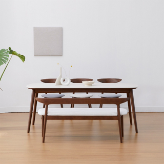 [헨지디자인] 카일리 6인 포세린 식탁 벤치형 세트 의자3+벤치1 []