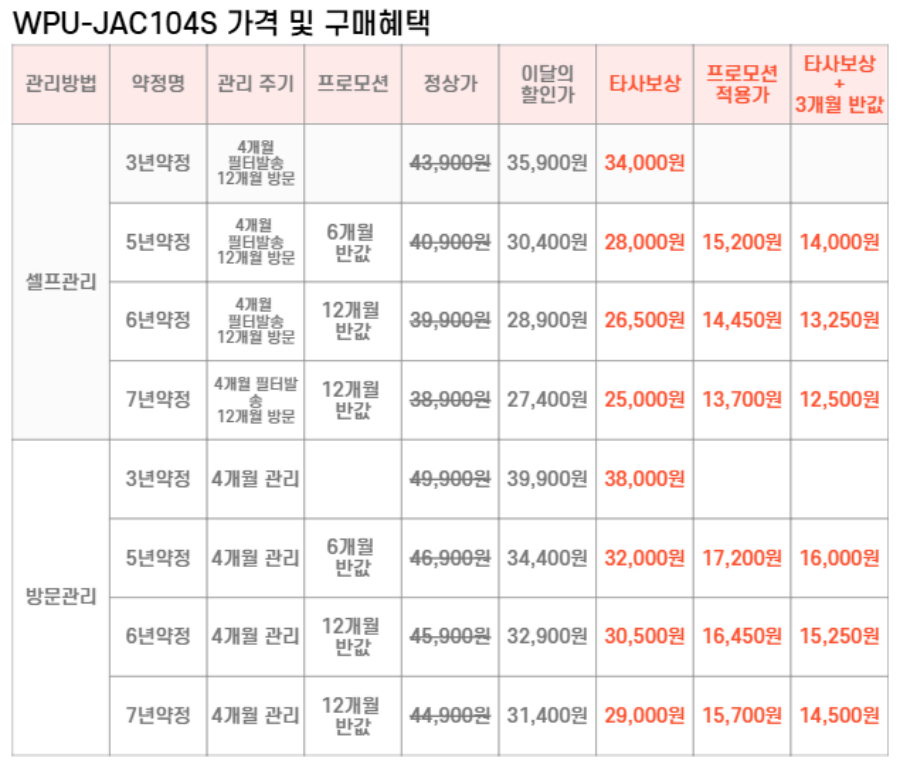 WPU-JAC104S SK매직 [SK매직] 초소형 직수 정수기 제품분류 정수기 정수방식 직수형 기능 냉온전용 AS기간 렌탈기간내 최저 렌탈가 월 25,000 (렌탈가) 제휴카드 할인가 월 (렌탈가) 3년 5년 6년 7년 셀프관리 방문관리/4개월 셀프관리(타사보상) 방문관리/4개월(타사보상) 제품색상 선택 화이트 + 0원 소프트핑크 + 0원 파스텔블루 + 0원 다크그레이 + 0원 할인 제휴카드 보기 렌탈신청 장바구니