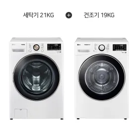 21KG,19.. 드럼,패키지F21WDLPR+RH19WTWN[LG] 트롬 세탁기 21kg + 건조기 19kg 화이트